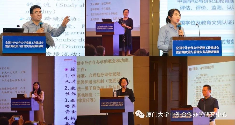 本期研修班开学典礼后,来自全国多个中外合作办学机构、项目的党委书记、院长(或项目负责人)作中外合作办学党建工作交流发言。中国高等教育学会副会长、秘书长康凯给学员上了生动的党课。林金辉对党建工作经验交流做了总结发言,并为学员上了第一课,题为《守住八条底线,强化合作共赢——中外合作办学如何坚持中方主导权》。开学前,本会秘书处做了一项基础性的工作,向学员征到了100多条关于怎么办好这次活动的意见、建议和希望解决的问题。这些信息开学前已经发送授课教师作为备课重要参考。