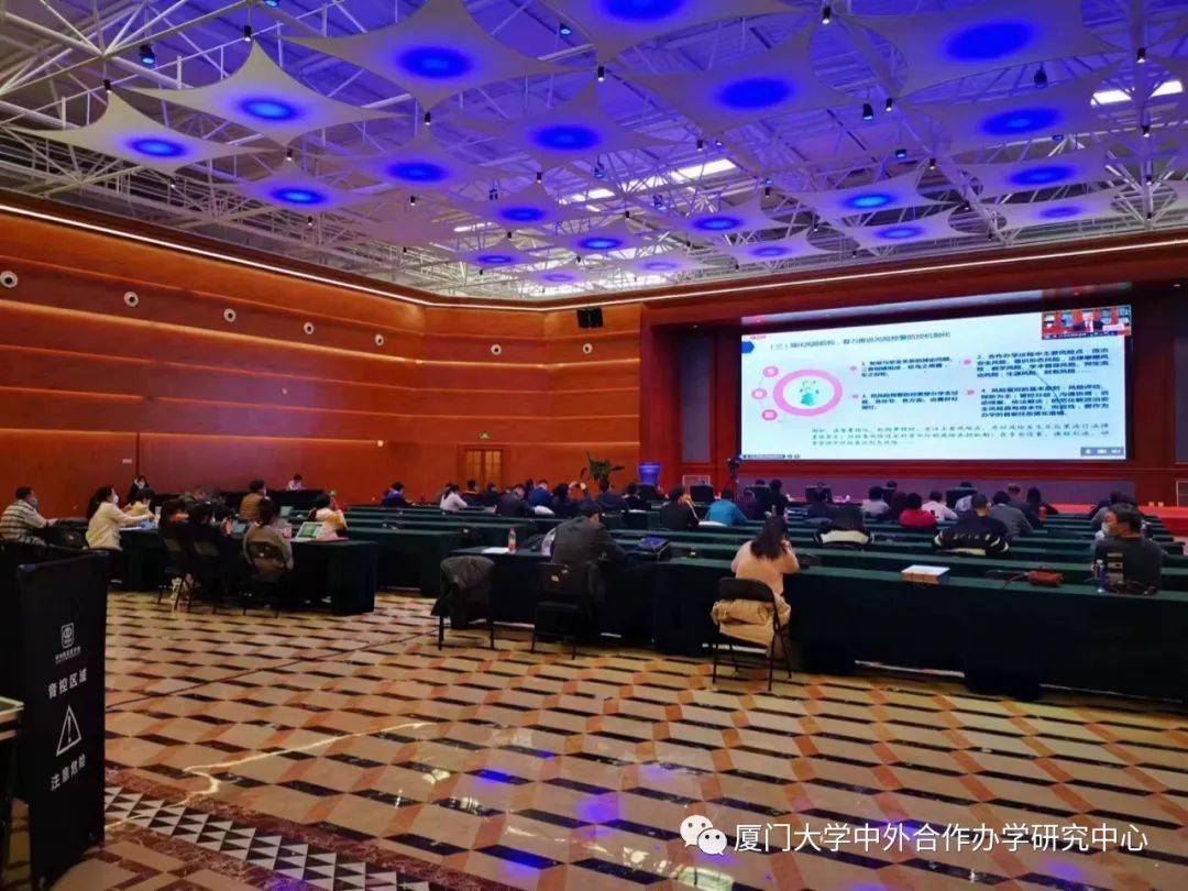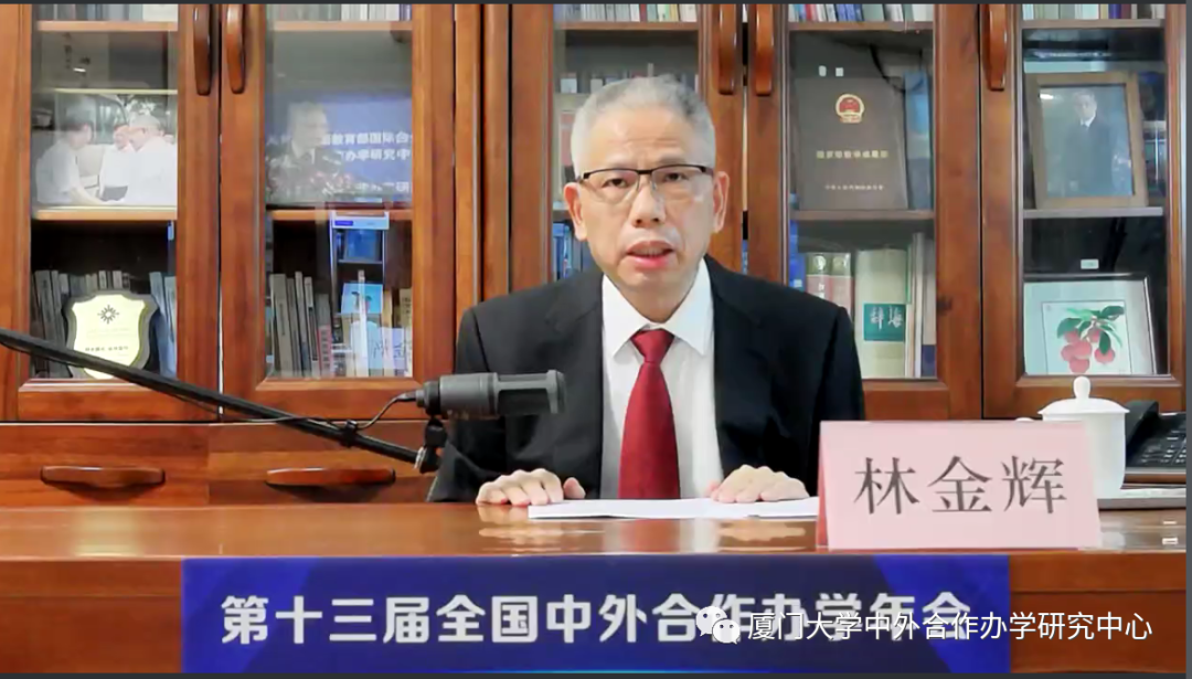 大会主席,厦门大学中外合作办学研究中心主任、中国高等教育学会中外合作办学   研究分会理事长林金辉作主旨报告