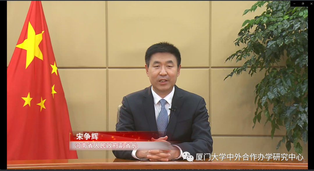 宋争辉副省长代表河南省人民政府对全国中外合作办学年度盛会的召开表示热烈祝贺,对出席会议的嘉宾表示诚挚欢迎。他指出,河南中外合作办学走在全国前列,为经济社会发展提供了有力的国际化人才支撑;教育强国,开放赋能,教育事业既在对外开放中发展壮大,又在对外开放中走向世界。当前百年变局加速演进,国际形势复杂严峻,深刻影响着全球教育开放格局和进程。党的二十大报告提出,要加快建设教育强国,坚持高水平对外开放,对教育对外开放提出了新的时代要求。全国中外合作办学年会是全国中外合作办学峰会、我国教育对外开放领域的知名品牌和国家级智库。河南省将以此次年会为契机,持续推进创新驱动、科教兴省、人才强省战略和制度性开放战略,积极实施教育对外开放质量提升工程,进一步坚定加快教育对外开放的信心和决心,加快建设高水平中外合作办学,支持一批示范性机构和项目,推动中外合作办学提质增效,努力发展更全方位、更多层次、更宽领域、更加主动的教育对外开放新格局。